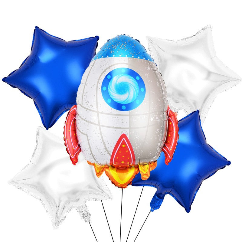 Baloane Model Astronaut, Flippy, Set din 5 baloane, 1 Astronaut, 2 Stele, 2 Rotunde, din folie de aluminiu, Adeziv si pai incluse, 78x45cm