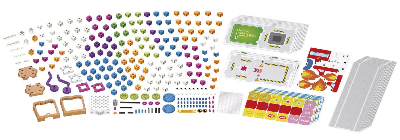 Kit STEM Copiii descopera principiile de codare si cum functioneaza robotii Acest mic și simpatic sandviș cu gem este de fapt un robot care îi învață pe copii principiile și abilitățile de codare. Nu aveți nevoie de o tabletă, de un smartphone sau de un computer pentru a programa acest robot; programele sunt create prin simpla așezare a unei secvențe de carduri. Pe măsură ce robotul trece peste cardurile de cod, un scaner optic OID din partea de jos a robotului citește cardurile de cod unul câte unul și încarcă programul. Apoi, plasați robotul pe o grilă, iar el va execută programul. Puteți programa robotul să se deplaseze în diferite direcții, să își activeze angrenajul de ieșire, să își aprindă LED-ul, să emită sunete și să răspundă la diferite carduri de funcții. Angrenajul de ieșire integrat face posibilă construirea unor creații robotice simple, cu brațe sau alte părți mobile care răspund conform instrucțiunilor programului. Acest kit de robot predă, de asemenea, abilități de inginerie fizică și de rezolvare a problemelor printr-o serie de lecții de construcție și codificare. Cele 30 de lecții sunt aliniate la standardele pentru educația în domeniul informaticii elaborate de Computer Science Teachers Association (CSTA) și de International Society for Technology (ISTE) Education, precum și la cursurile de la Code.org. Lecțiile progresează în complexitate prin intermediul manualului ilustrat, permițând kitului să fie adecvat pentru un copil de la 4 ani cu ajutorul unui adult și până la opt ani. Lecțiile acoperă aceste șase domenii cheie în codificare: secvențiere, bucle, evenimente, condiționale, funcții și variabile. Sunt incluse 6 povești, fiecare cu o serie de provocări de construcție modele și de codificare precum și lecții legate de acestea: un șoarece se deplasează printr-un labirint pentru a găsi brânză; un pinguin se plimbă printr-o grădină zoologică; un jucător de fotbal dă o minge în poartă; un camion de pompieri stinge un incendiu; și un robot de fabrică îndeplinește sarcini într-o secție de fabrică. Un manual ilustrat în culori îi ghidează pe utilizatori prin lecțiile de codare și asamblarea diferitelor modele. Conține 417 piese, 30 de experimente, manual cu instrucțiuni. Confecționat din plastic. Conform reglementarilor EN71&ASTM. AVERTISMENT: Contraindicat copiilor sub 3 ani, conține piese mici. Se recomandă supravegherea copilului de către un adult în timpul jocului. Citiți instrucțiunile înainte de utilizare, urmați-le și păstrați-le pentru referință. Produs in Taiwan pentru Thames & Kosmos, Anglia. Manual Kit STEM Primii pasi Principii de codare si roboti - descarca fisier