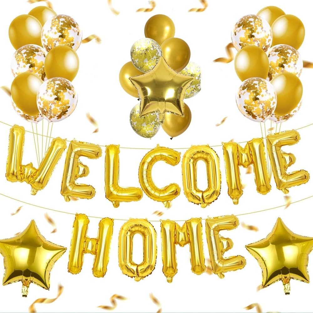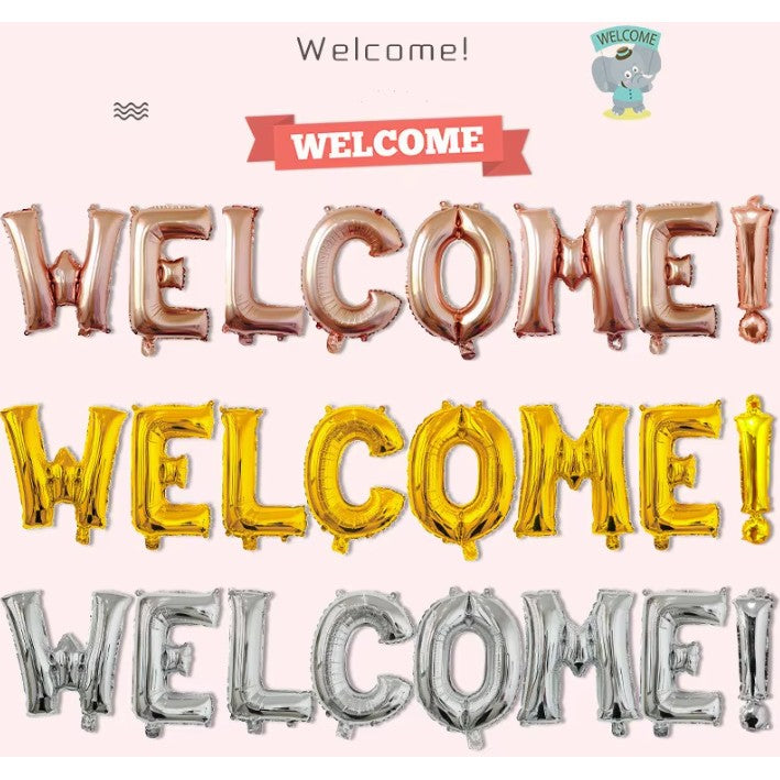 Set Baloane din Folie Metalizata, ANGELBEAR, Model WELCOME!, Litere de 40 cm, Baloane Party, Ambalaj Individual, Pai Inclus, Umflare cu Aer sau Heliu, Auriu